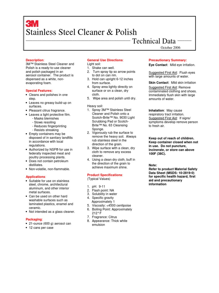 Stainless steel cleaner and polish aerosol tech data sheet pdf 60 3kb safety data sheets.