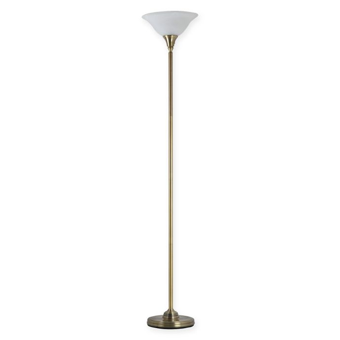 Adesso Julian Torchiere Floor Lamp In Antique Nickel With Alabaster Glass Shade Bed Bath Beyond