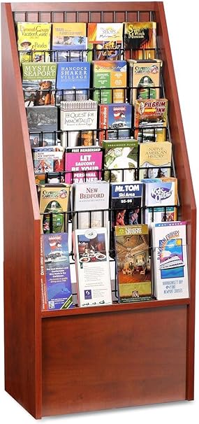 Amazon Com Floor Literature Rack With Adjustable Pockets For 4x9 Brochures And 8 5x11 Magazines Red Mahogany With Black Wire Literature Organizers Office Products